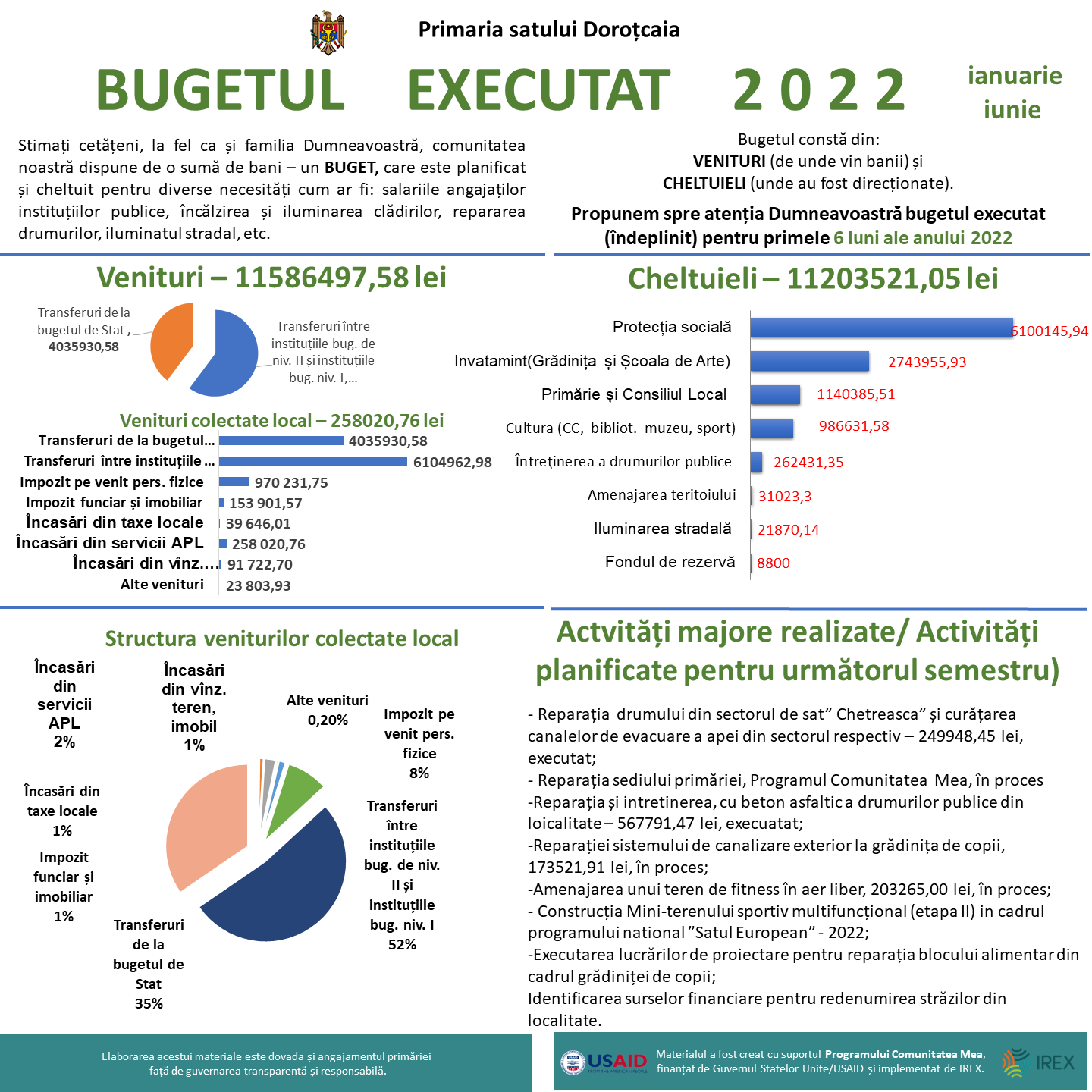 Stimați cetățeni, propunem atenției Dumneavoastră informația cu privire la bugetul executat (îndeplinit) pentru primele șase luni ale anului curent.Mai jos...